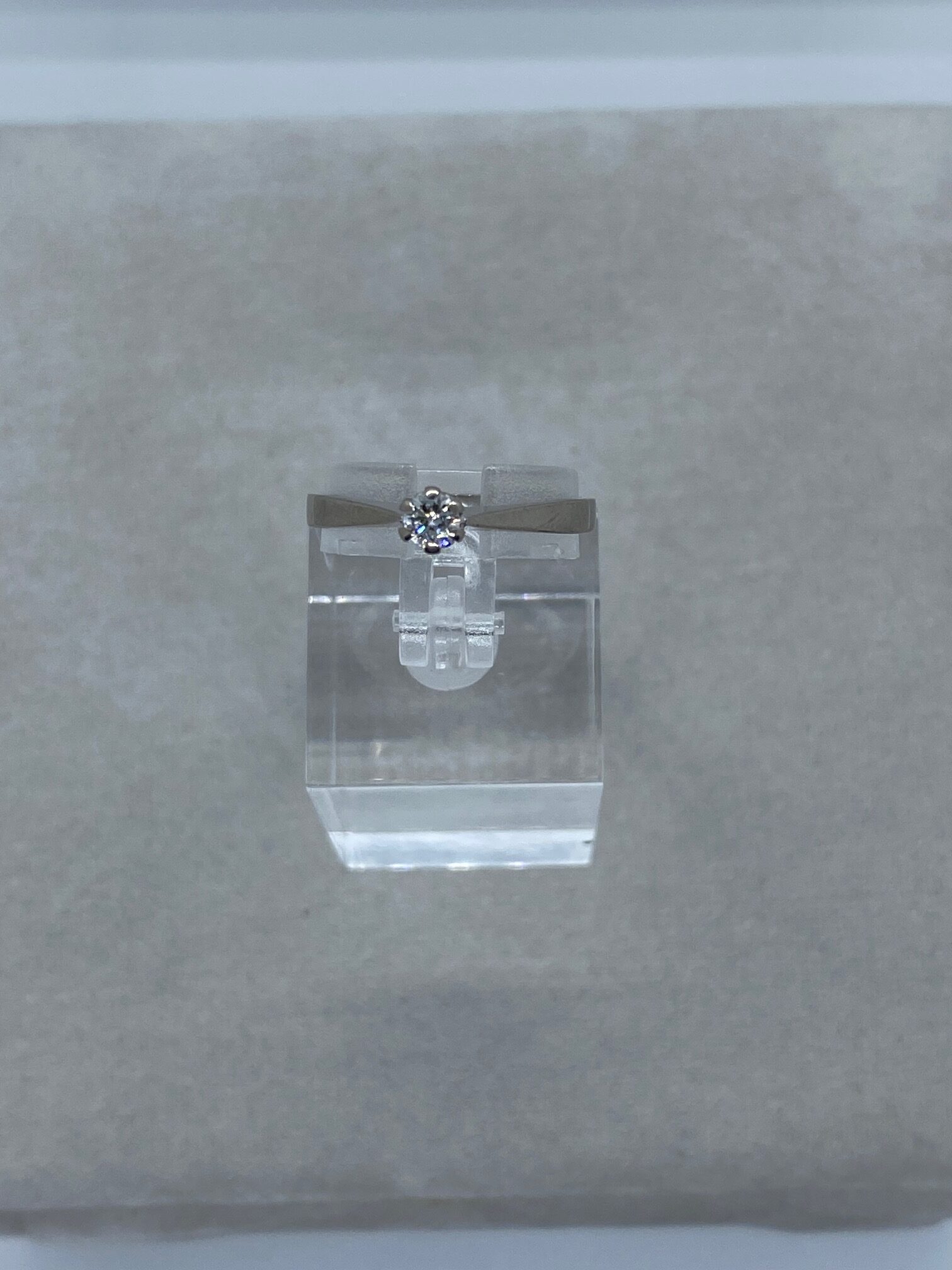 Solitärring i 18K vitt guld med en briljantslipad diamant på 0,15ct. Tillverkad år 1984 i Uppsala.