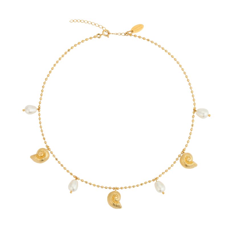 Säsongens trendigaste halsband? Seadora Necklace! De fina snäckmotiven och de skimrande Swarovski® pärldropparna skapar ett uttryck som känns lekfullt och elegant. Bär det ensamt för en ren, harmonisk look eller kombinera det med andra halsband för en mer uttrycksfull havsinspirerad stil.